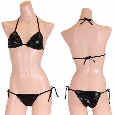パキッとコントラストの効いたキラキラメタリックビキニ ブラック ブラック
