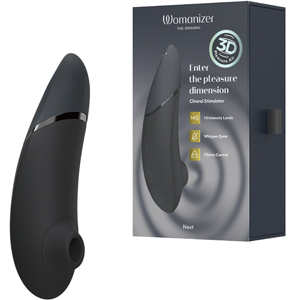 ウーマナイザーは次のステージへ。特許取得技術のプレジャーエアーテクノロジーは3Dプレジャーエアーテクノロジーへアップデート!この技術により吸引の「速さ」「強さ」に加えて、「深さ」をコントロールできるようになりました。従来のウーマナイザーよりも浅く優しい吸引ができ、オーガズム後の繊細なクリトリスを心地よく刺激することができます。これまでのウーマナイザー製品は1分間に約20回の吸引振動をしていましたが、ネクストは1分間に3回とスローにすることで、よりリアルな吸引を実現。吸引口に指をあててみると驚いてしまうくらい、それまでのウーマナイザーと吸引される感覚が異なります。モーターを一新することで圧倒的に稼働音も静かに!これまでよりも更に音を気にすることなく、オーガズムに集中できます。吸引強弱レベルは最大の14段階、吸引の深さも3段階調整可能。ブラスマイナスボタンを何度も押さなくても、ボタン長押しでシームレスに最大吸引レベルまで上げられます。自動操縦してくれる「パイロットモード」、一気に弱い吸引に切り替えてオーガズムの余韻を楽しめる「アフターグロー機能」、対象に触れることで吸引を自動でON・OFFする「スマートサイレンスモード(タッチセンサー機能)」など、欲しい機能が全て搭載された最上グレードのウーマナイザーです。●ブラック※こちらの商品は受注発注商品の為、ご注文から発送までに3、4営業日掛かる場合が御座います。
