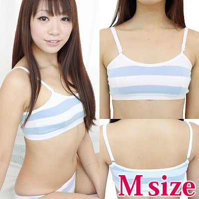 楽チン!かわいい!サックス×ホワイトのしましま柄スポーツブラ(M)。太めのボーダーでピュア感たっぷり!もちろん肩紐の調節も可能です。しまパンと併せれば萌え度もさらにUP!普段着やコスプレ衣装のお供にどうぞ。※水洗い不可、塩素系漂白剤による漂白不可、アイロンは中温で当て布使用、ドライクリーニング可、色落ちの可能性がありますのでご注意ください。※こちらの商品は在庫の状況によりお届けまでに4日〜7日程度かかる場合がございます。
