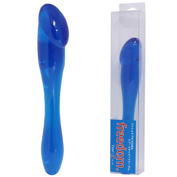 超人気!初心者さんにも安心な、ソフト素材のスティックディルド。クリアブルーの「β(ベータ)」は、両端で形状が異なり、少し太目の流線型ストレート側と、ペニスを挿入する感覚を味わえる側の2種類。アソコはもちろん、アナルにも使える優れものです。つるりと入る柔らか素材なので、初心者の方にも安心してお使い頂けます。機能性と見た目の美しさを兼ね備えた、人気のディルドです。