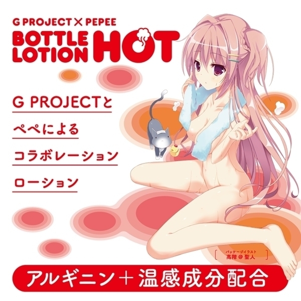 擦る度に温もりが増す!まるで人肌みたいな温感ローション「G PROJECT×ペペ ボトルローション HOT 130ml」。少量でもよく伸びて広がるハイクオリティーな温感タイプのローションです!安心して使えるG PROJECTとペペのコラボ。パッケージイラストは人気絵師の高階@聖人氏が手掛ける可愛らしくもちょっぴりセクシーなデザイン♪ほんわりあたたかアルギニン+温感成分配合で、温感ローション特有のベタつきを極力抑え、人肌恋しい冬の時期はもちろん、年中お楽しみ頂けます!糸引きは少なく柔らかくゆるやかな滑りが特徴。ソロプレイにもカップルでのご使用にもどうぞ♪