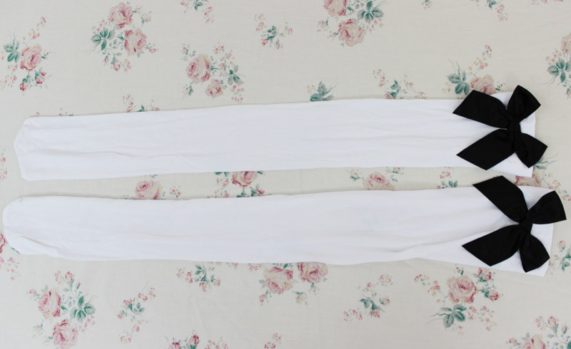 【420円★数量限定】リボン付きニーハイ 白×黒リボン<お一人様1点限り>