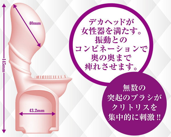 ストレスフリーな使用感♪ズレにくさを考慮した電マ用の2か所責めアタッチメント。●ミドルサイズ電マに装着可能●ホールド力高めなフィット感●ズレにくく快適プレイを補助●オルガスター型大きめヘッド●膣内をたっぷり満たして振動●ブラシ突起でクリトリス刺激。中型サイズの電動マッサージャーにハメるだけ!AVの世界でも活躍するあの強烈振動を、膣内でたっぷり感じられるオルガスター型アタッチメント。プリッとしたソフトな弾力が電マヘッドにしっかり密着、パワフル刺激を残さず内部へ届けます。