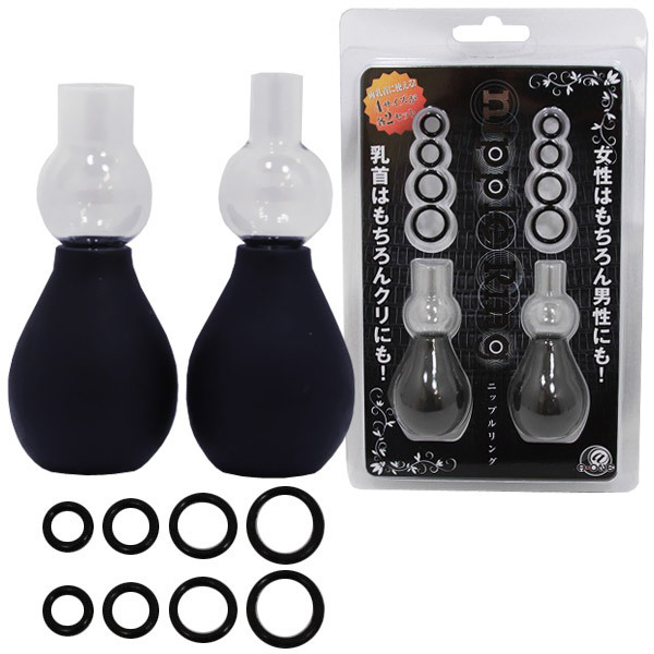 乳首やクリを強制勃起!4サイズのリングとポンプで楽しむニップルリング。乳首の勃起状態を持続できるセット!女性はもちろん男性にもご使用頂けます。使い方は簡単!リングをポンプの吸引口にセットし、乳首やクリをポンプで吸い上げて勃起させてから、リングを乳首やクリにスライドし固定します。ポンプの吸い口は大小2サイズありますので、お好みの場所に合わせてお使い頂けます。