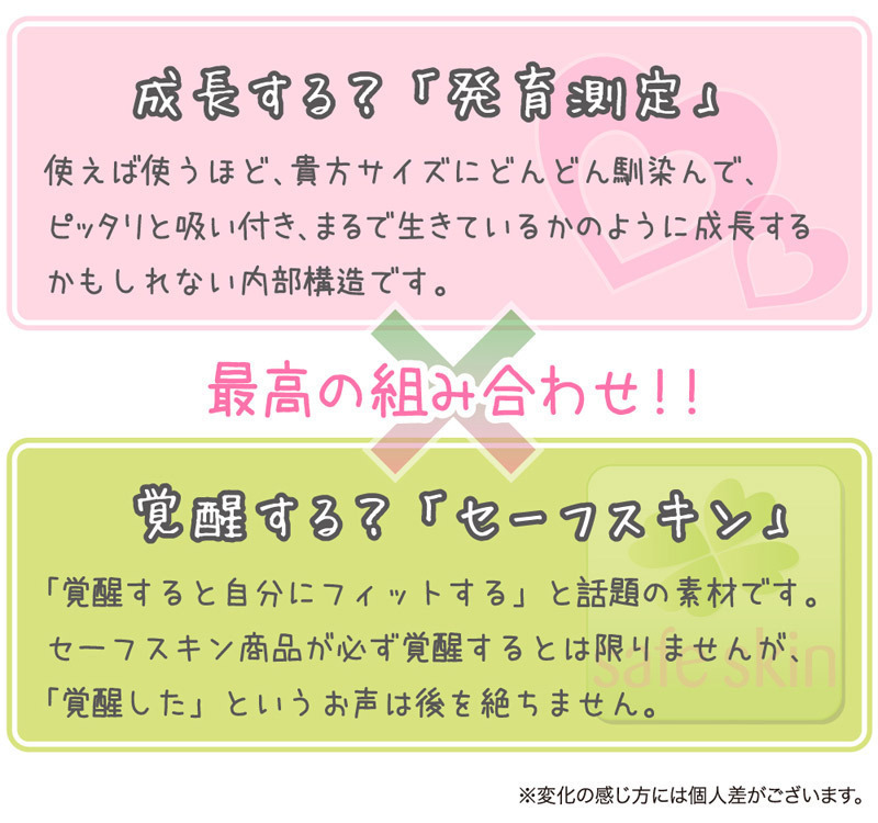 あなた好みに育て上げてね♪オリジナル覚醒が楽しみなオナホ 発育測定。●衝撃!1kg越えの大型ボディ。●お腹周りや背中のラインも秀逸。●話題沸騰のセーフスキン素材。●ぱっくり開いたふっくらスジまん。●複雑なヒダをたっぷり寄せた内部。●膣内の最狭箇所はわずか12mm。●最奥の子宮口はキツすぎ注意。挿れれば挿れるほどにあなたの形へと馴染んでいく覚醒型オナホ!安定感バッチリの大きなボディは正常位でもバックからでも、好きな体勢で思う存分プレイできます。